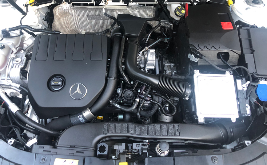 Κινητήρια δύναμη της GLB 200, ο γνωστός και από την GLA που παρουσιάσαμε πριν λίγο καιρό βενζινοκινητήρας 1.332 κ.εκ. με 163 ίππους (και σύστημα απενεργοποίησης κυλίνδρων κατά τη λειτουργία με μερικό φορτίο και λίγες στροφές), προϊόν συνεργασίας της Mercedes με τις Renault-Nissan-Mitsubishi. Η κίνηση μεταφέρεται στους εμπρός τροχούς μέσω του –επίσης γνωστού- αυτόματου κιβωτίου διπλού συμπλέκτη (7 DCT) και το ερώτημα που τίθεται είναι, πόσο εύκολα ένας κινητήρας μικρού κυβισμού μπορεί να «αντιμετωπίσει» ένα αμάξωμα που το βάρος του ξεπερνά τον 1,5 τόνο. Η απάντηση στο ερώτημα σε απόλυτους αριθμούς είναι απλά. Εύκολα, αφού ο κινητήρας είναι εύστροφος, με καλά αποθέματα ροπής (250 Nm/1.620 σαλ) και σχετικά γραμμικός στην απόδοσή του. Επιταχύνει από στάση στα 100 χλμ/ώρα το βάρους περίπου 1555 κιλών αμάξωμα μέσα σε 9.1 δεύτερα και το φτάνει στην τελική ταχύτητα των 207 χλμ/ώρα, επιδόσεις που υπερκαλύπτουν τις ανάγκες της οικογενειακής οδήγησης.