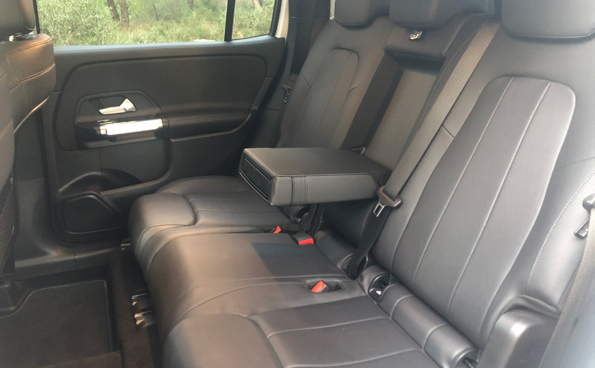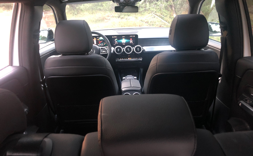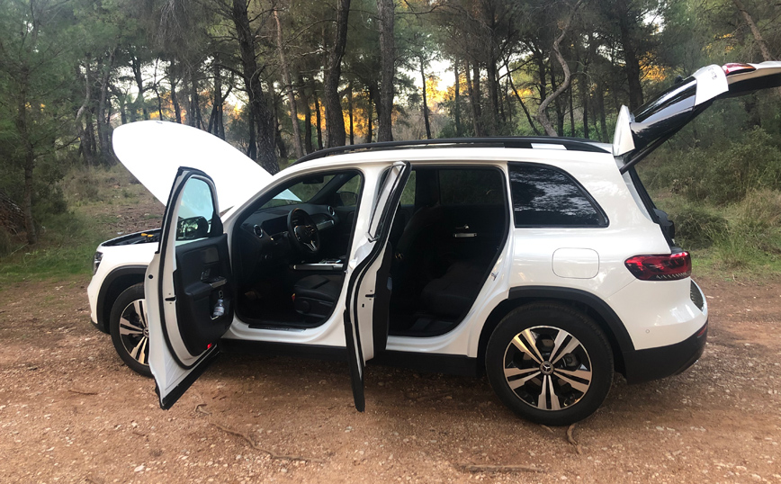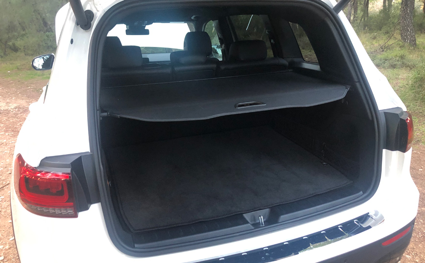 Με μεταξόνιο μεγαλύτερο (+10εκ.) και από την GLB, οι χώροι για πέντε επιβάτες είναι επαρκείς, με άνεση για τα πόδια και το κεφάλι, ενώ ο χώρος αποσκευών χωρά 565 λίτρα, με δυνατότητα αυξομείωσης καθώς τα πίσω καθίσματα (χωρισμένα σε 40:20:40 με το μεσαίο αναδιπλούμενο να επιτρέπει την φόρτωση μεγάλων σε μήκος αντικειμένων) σύρονται εμπρός-πίσω, ενώ σε περίπτωση αναδίπλωσης, μετατρέπεται σε …φορτηγό με χωρητικότητα 1800 λίτρα. Επιπλέον, εάν υπάρχουν οικογενειακές ανάγκες διατίθεται και σε 7θέσια έκδοση με την τελευταία σειρά καθισμάτων (+976 ευρώ) κατάλληλη για ύψη έως περίπου 1,65 μ. Στο εσωτερικό υπάρχουν και πολλοί χώροι για μικροπράγματα με κάπως άβολες τις θήκες στις πόρτες που είναι στενές, ενώ και εδώ επισημαίνουμε την έλλειψη ρεζέρβας που δεν είναι επουσιώδης, ειδικά σε αυτοκίνητα όπως η GLB που σε προδιαθέτουν για εξερευνήσεις.