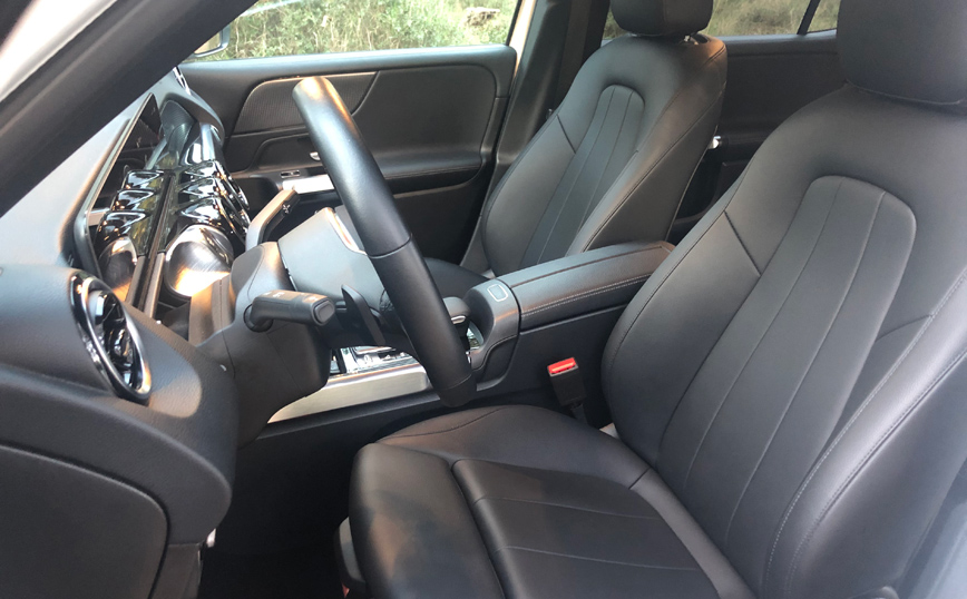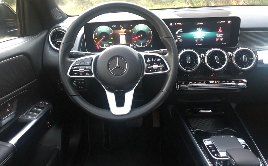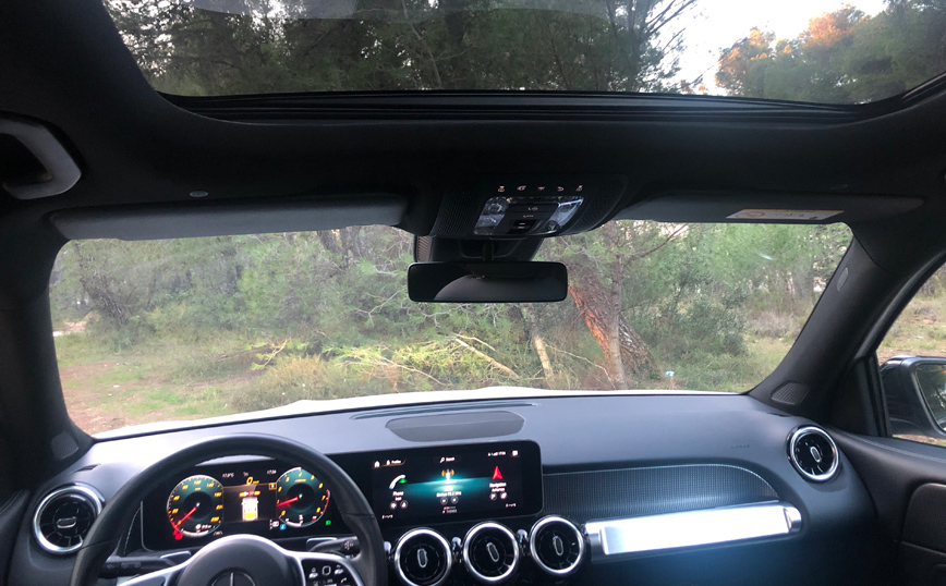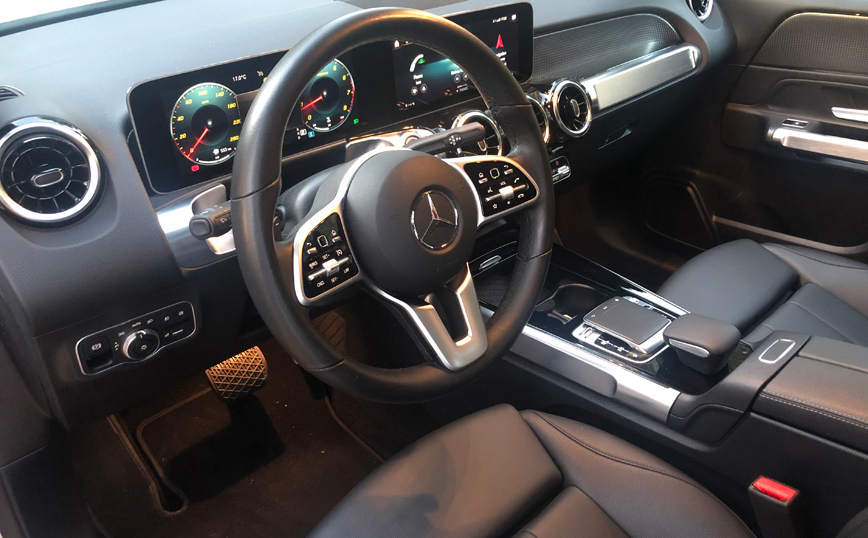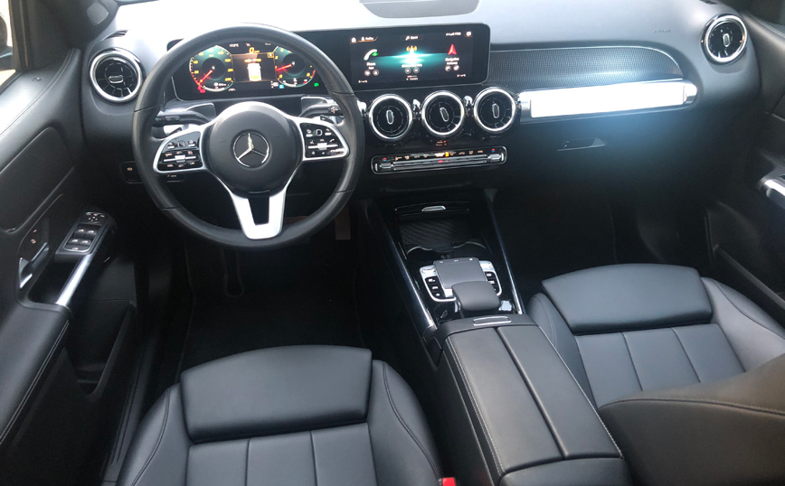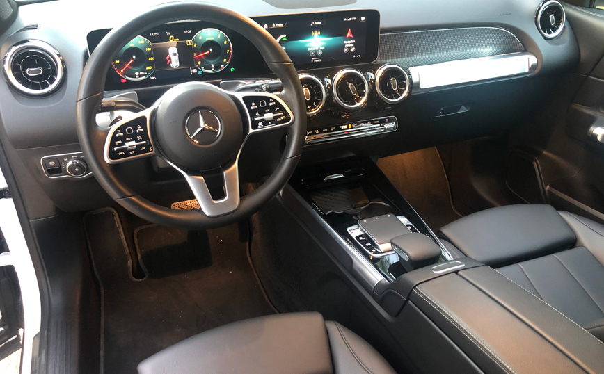 Κατά τα λοιπά, η καλή (παρά την περιορισμένη πλευρική στήριξη) θέση οδήγησης που θα βολέψει κάθε σωματότυπο, η εργονομία και η άπλετη περιφερειακή ορατότητα (τέσσερα πλευρικά τζάμια), κάνουν το μεσαίο γερμανικό SUV ένα από τα πλέον άνετα και ευχάριστα που έχουμε οδηγήσει. Με την ποιότητα δεδομένη σε όλα τα μοντέλα της μάρκας, ο βασικός εξοπλισμός του μοντέλου είναι σχεδόν πλήρης ακόμα και από την βασική έκδοση με τους 136 ίππους και την τιμή έναρξης των 37.235 ευρώ. Συγκεκριμένα η GLB διαθέτει ESP, 7 αερόσακους, κλιματισμό, ηλεκτρικά παράθυρα, κεντρικό κλείδωμα με τηλεχειρισμό, ηλεκτρικούς καθρέφτες, σύστημα προειδοποίησης επικείμενης σύγκρουσης και αυτόματου φρεναρίσματος, σύστημα υποβοήθησής διατήρησης στη λωρίδα κυκλοφορίας, 4 drive modes (eco, comfort, sport & individual), cruise control, κάμερα οπισθοπορείας, σύστημα πολυμέσων MBUX με οθόνη αφής και χειριστήρια στο τιμόνι, ζάντες αλουμινίου 18 ιντσών, ράγες οροφής, σύστημα ελέγχου πίεσης ελαστικών, κ.ά. Στην έκδοση της δοκιμής μας η διπλή ηλιοροφή, έδινε ακόμα μεγαλύτερο αέρα στο ευρύχωρο εσωτερικό, κάτι που σε συνδυασμό με την μοντέρνα σχεδίαση και τον ευχάριστο διάκοσμο, δημιουργεί μια πολυτελή ευάερη και ευήλια καμπίνα, καλύτερη από οποιανδήποτε του ανταγωνισμού.