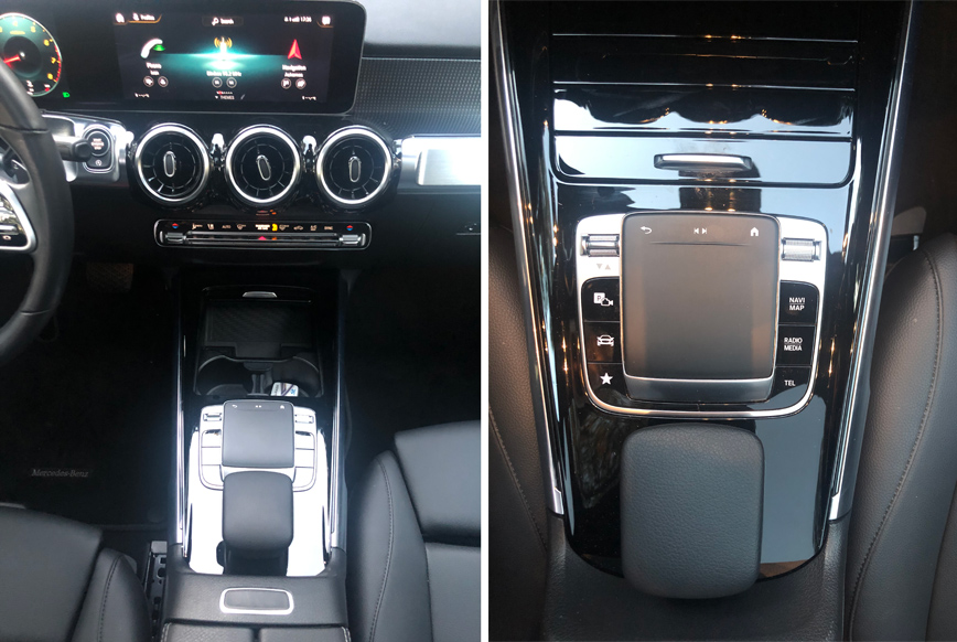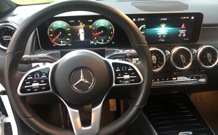 Επιπλέον η έκδοση που δοκιμάσαμε διέθετε την πιο πλήρη έκδοση του MBUX με τη μεγάλη οθόνη των 10,25 ιντσών (+846 ευρώ) και τον μεγάλο ψηφιακό πίνακα οργάνων (+586 ευρώ). Οι λειτουργίες του συστήματος πραγματοποιούνται από την οθόνη αφής, το τιμόνι, ή το ιδιαίτερα ένα ευαίσθητο και μεγάλο touchpad στην κεντρική κονσόλα (πολλές φορές ενεργοποιείται κατά λάθος), αλλά και το σύστημα φωνητικής ενεργοποίησης, που δυστυχώς δεν είναι στα ελληνικά και απαιτεί καλή προφορά εκ μέρους του χρήστη.