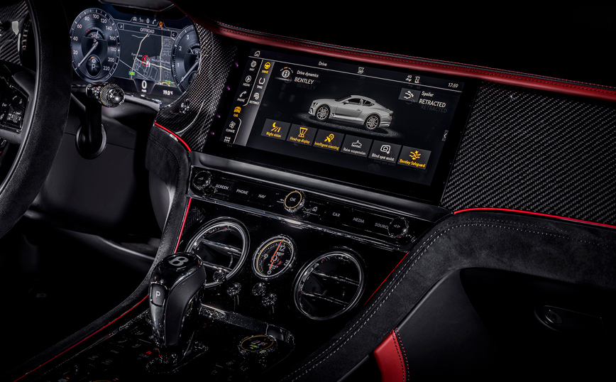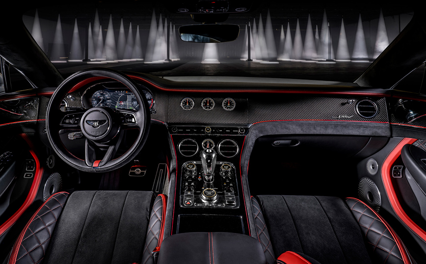 Τέλος, η GT Speed είναι οδηγοκεντρική και προσφέρει θέσεις για τέσσερις επιβάτες, με χωρητικότητα αποσκευών 358 λίτρων, όντας φινιρισμένη με εξαιρετική λεπτομέρεια, υπερσύγχρονο ταμπλό οργάνων και το φημισμένο Bentley Rotating Display.