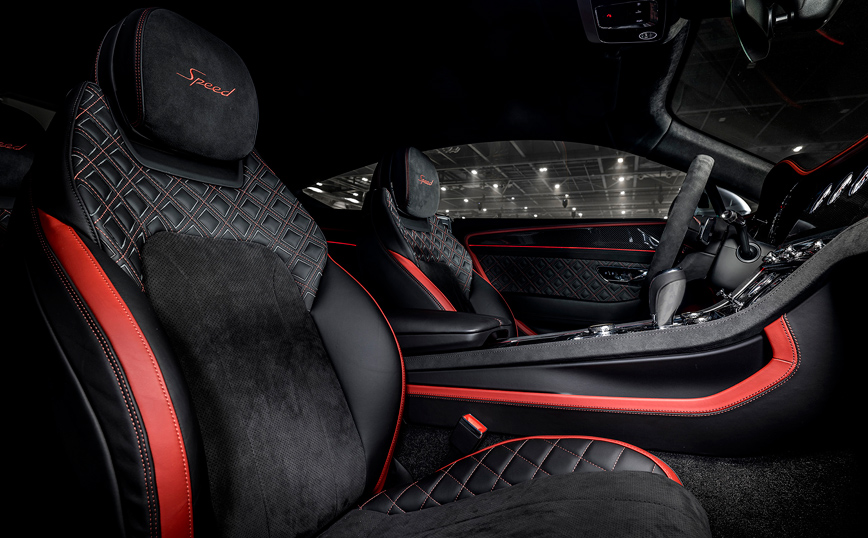 Η καμπίνα της νέας Continental GT Speed δείχνει την τεχνογνωσία της μάρκας στη δημιουργία των ποιοτικών εσωτερικών, με χειροποίητα υλικά, διχρωμίες και υψηλής ποιότητας δέρματα σε συνδυασμό με Alcantara, τόσο στην καμπίνα όσο και στο τιμόνι. Το πολυτελές εσωτερικό μπορεί να εξατομικευτεί περαιτέρω με μια επιλογή από 15 κύρια και 11 δευτερεύοντα χρώματα δέρματος. Περίτεχνες ραφές και γαζιά, επενδύσεις αλουμινίου και εξαιρετικής ποιότητας καπλαμάς, στο κλασσικό Piano Black αλλά και άλλες αποχρώσεις, συμπληρώνουν την εικόνα του εσωτερικού.