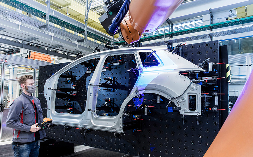 Η Audi με το Q4 e-tron, που αποκαλύπτεται σε λίγες μέρες κάνει το επόμενο βήμα στην εξέλιξη της σχεδιαστικής γλώσσας των ηλεκτρικών μοντέλων της. Το νέο compact SUV φέρνει τις γραμμές που παρουσίασε το Q4 concept car στις αρχές του 2019, σε ένα μοντέλο παραγωγής. Για να γίνει όμως κάτι τέτοιο, πρέπει να αναλάβει ενεργό ρόλο η ομάδα κατασκευής των γιγάντιων μηχανουργικών εργαλείων της μάρκας, των ειδικά σχεδιασμένων μητρών, κοπτικών και άλλων τμημάτων που προσαρτώνται στις πρέσες και που δίνουν σχήμα στο μέταλλο.