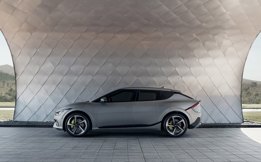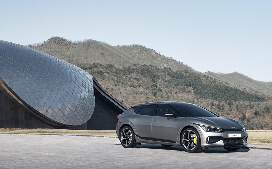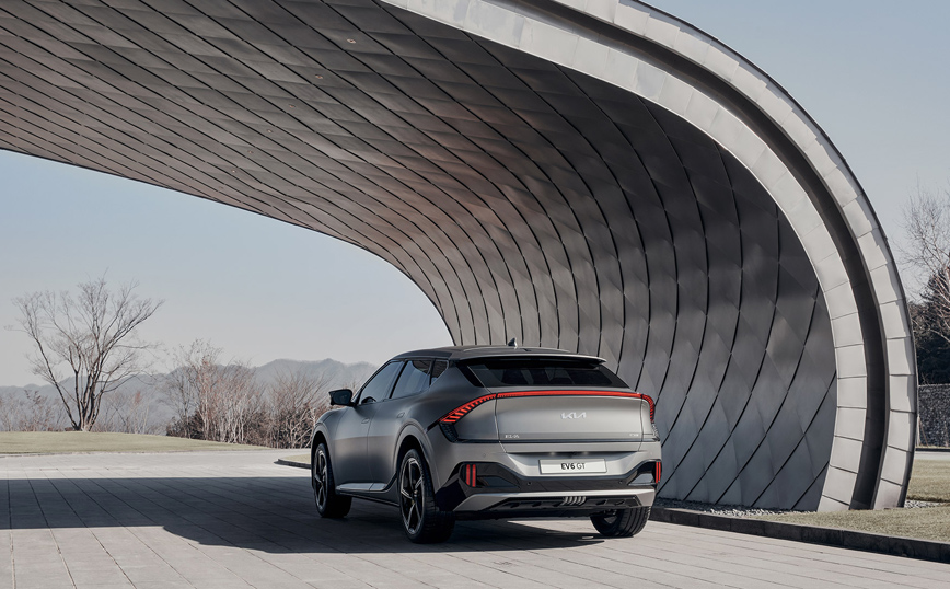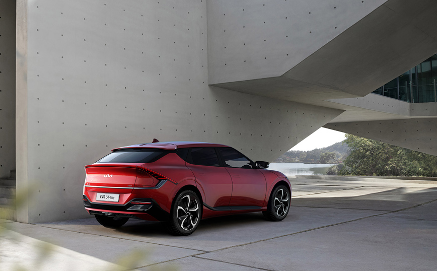 Η σχεδίαση του EV6 (τρεις εκδόσεις: EV6, EV6 GT-Line & EV6 GT) προκαλεί θετικές επιρροές και φυσική ενέργεια, μέσα από αντίθετους συνδυασμούς από αιχμηρά στιλιστικά στοιχεία και ανάγλυφα σχήματα. Ειδικά η έκδοση GT του EV6 προσφέρει ένα ιδιαίτερο, εντυπωσιακό αμάξωμα με χαρακτηριστικά υψηλής τεχνολογίας, καθώς και πρωτοφανή επίπεδα απόδοσης από ηλεκτρικό μοντέλο.
