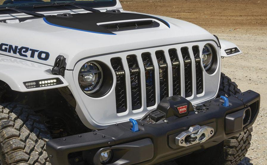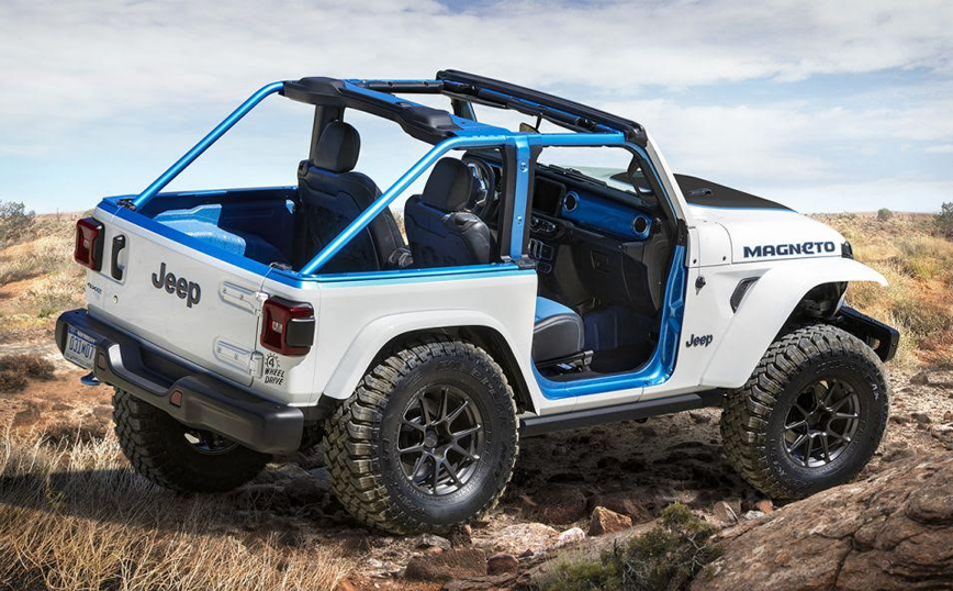 Το αμιγώς ηλεκτρικό Wrangler Magneto βασίζεται σε ένα 3θυρο Wrangler Rubicon, και όπως χαρακτηριστικά αναφέρει ο Επικεφαλής σχεδιασμού της μάρκας στη Β. Αμερική, κ. Mark Allen, δημιουργήθηκε για να δουν πως θα μπορούσε να ανταπεξέλθει σε ακραίες συνθήκες ένα Jeep χωρίς κινητήρα εσωτερικής καύσης. Κάτω από το καπό θέση πήρε ένας νέος ηλεκτροκινητήρας που δημιουργήθηκε ειδικά για το Magneto, ο οποίος λειτουργεί στις 6.000σ.α.λ. Η απόδοση του είναι αντίστοιχη με τον V6 βενζινοκινητήρα Pentastar των 3,6 λίτρων, με 285 ίππους και 370Nm ροπής. Βέβαια σε σχέση με τον κινητήρα εσωτερικής καύσης, ο ηλεκτροκινητήρας του Magneto έχει διαθέσιμη το σύνολο της ροπής από στάση, εκτοξεύοντας (εντελώς αθόρυβα) το πρωτότυπο μέχρι τα 100χλμ./ώρα σε μόλις 6,8δλ., με μηδενικούς ρύπους.