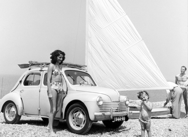 Για όσους θέλουν να βγουν στους δρόμους και να απολαύσουν ξανά την αίσθηση ελευθερίας που επικρατεί, το 4 CV είναι η ιδανική επιλογή. Το νέο μικρό της Renault με τον κινητήρα στο πίσω μέρος, που σχεδιάστηκε με άκρα μυστικότητα κατά τη διάρκεια του πολέμου, χωρούσε άνετα μια οικογένεια με τις αποσκευές της.
