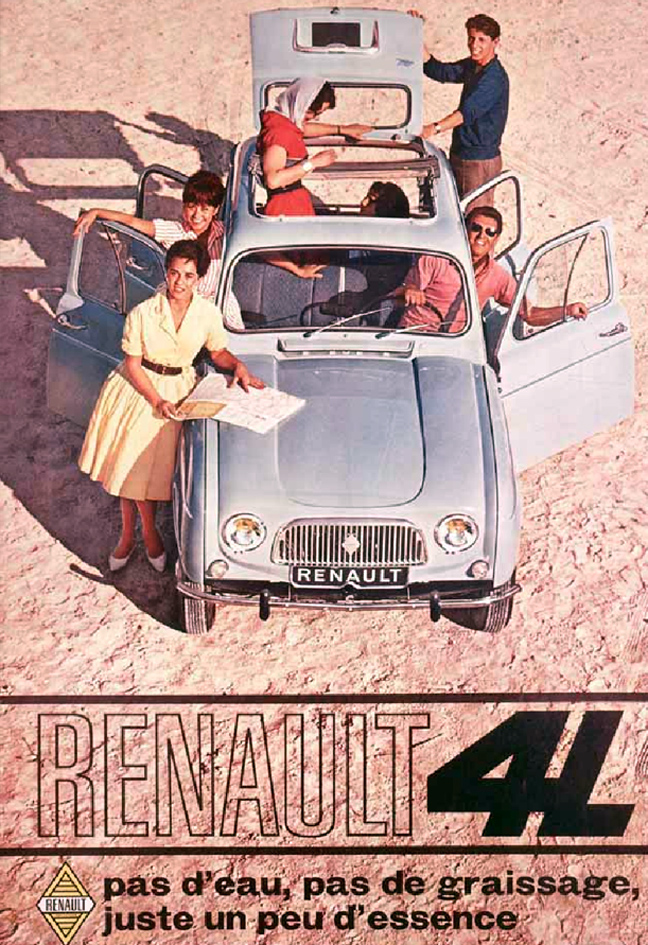 Για αυτές τις οικογένειες, η Renault κατασκεύασε το 4L, που εξελίχθηκε σε θρυλικό μοντέλο χάρη στην επαναστατική και πρακτική πόρτα του πορτ-μπαγκάζ που πρόσφερε εύκολη πρόσβαση σε όλη την οικογένεια και τις αποσκευές της. Το πρώτο πραγματικό αυτοκίνητο της Renault για να απολαμβάνει κανείς «τη χαρά της ζωής», σημείωσε πάνω από 8 εκατομμύρια πωλήσεις από το 1961 έως και τη δεκαετία του ’90.