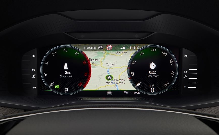 Στο εσωτερικό είναι διαθέσιμο το Virtual Cockpit με οθόνη 10,25 ιντσών και τέσσερις διαφορετικές διατάξεις, κατ’ επιλογή του οδηγού. Επίσης, πολυλειτουργικό τιμόνι με paddles ή και δυνατότητα «hands-on detect» σε κάποιες εκδόσεις, νέες διακοσμητικές λεπτομέρειες και ακμές, πρόσθετες ραφές με γαζιά αντίθεσης και βελτιωμένες λειτουργίες ατμοσφαιρικού φωτισμού LED. Για πρώτη φορά είναι διαθέσιμα δερμάτινα καθίσματα με ηλεκτρικές πολλαπλές ρυθμίσεις, αερισμό και λειτουργία μασάζ, ενώ γίνεται και χρήση ανακυκλωμένων υλικών. Σύστημα ψυχαγωγίας/ενημέρωσης με οθόνες αφής έως 9,2 ίντσες, με συνεχή σύνδεση στο διαδίκτυο, χειρισμό από τον ψηφιακό βοηθό φωνής Laura και ενημερώσεις χαρτών και λογισμικού «over the air». Διαθέσιμο είναι και PhoneBox για επαγωγική φόρτιση smartphone, ενώ ένα ηχοσύστημα CANTON δέκα ηχείων με κεντρικό ηχείο στον ταμπλό και υπογούφερ, αναβαθμίζει τον ήχο.