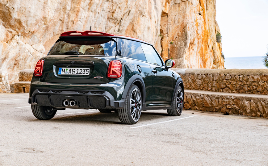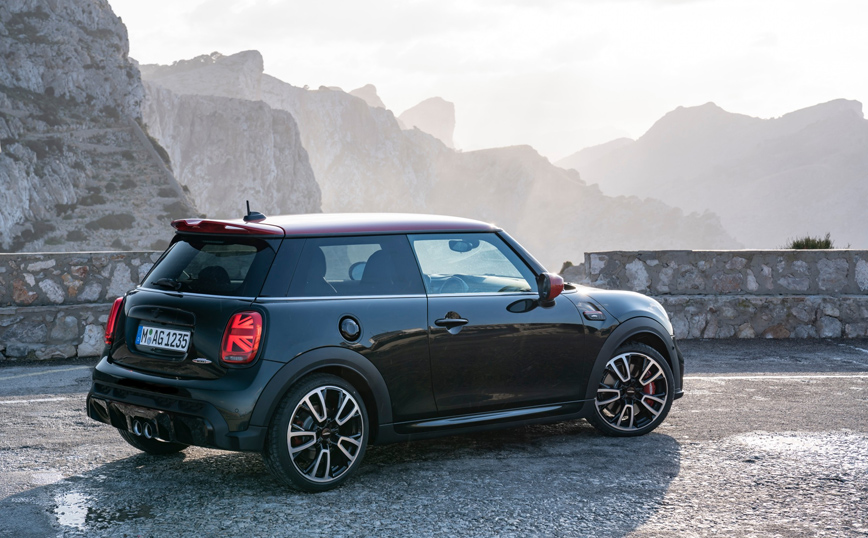 Ο χαρακτήρας του MINI John Cooper Works, που είναι αναπόσπαστα συνδεδεμένος με τις σπορ επιδόσεις, αποτυπώνεται στη νέα σχεδιαστική γλώσσα της βρετανικής μάρκας. Στο εμπρός τμήμα, οι στρογγυλοί προβολείς LED και η εξαγωνική μάσκα με μία κόκκινη εγκάρσια μπάρα που τώρα εκτείνεται προς τα κάτω, είναι στοιχεία που ξεχωρίζουν.