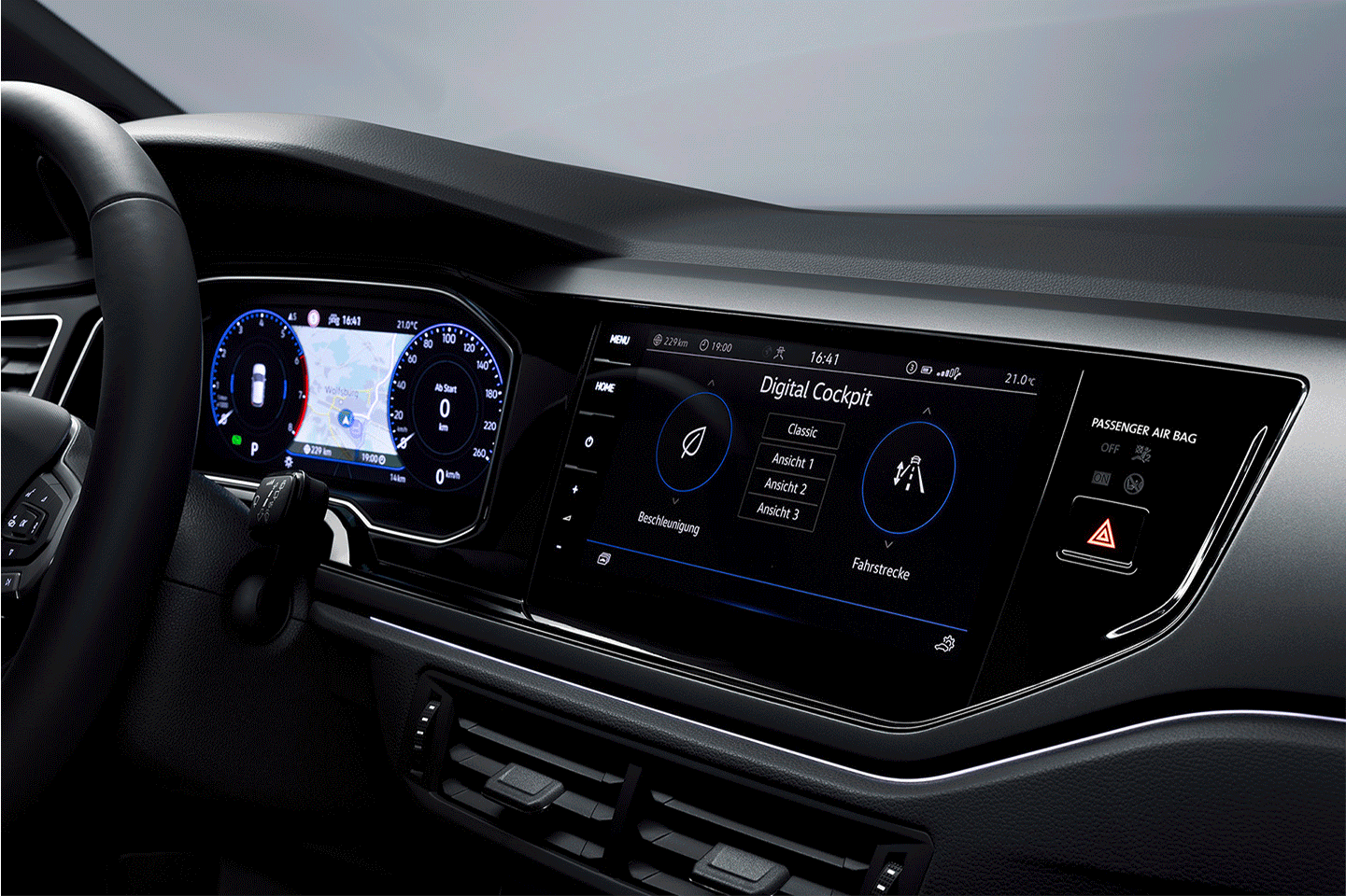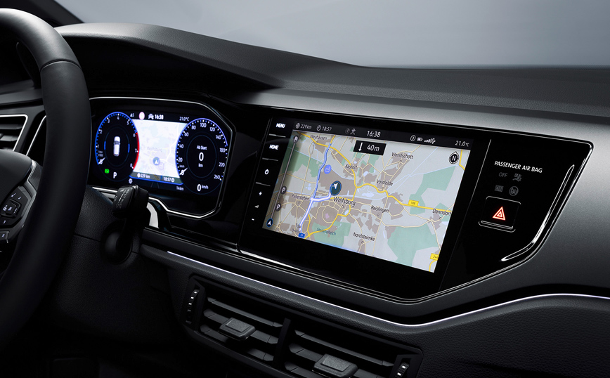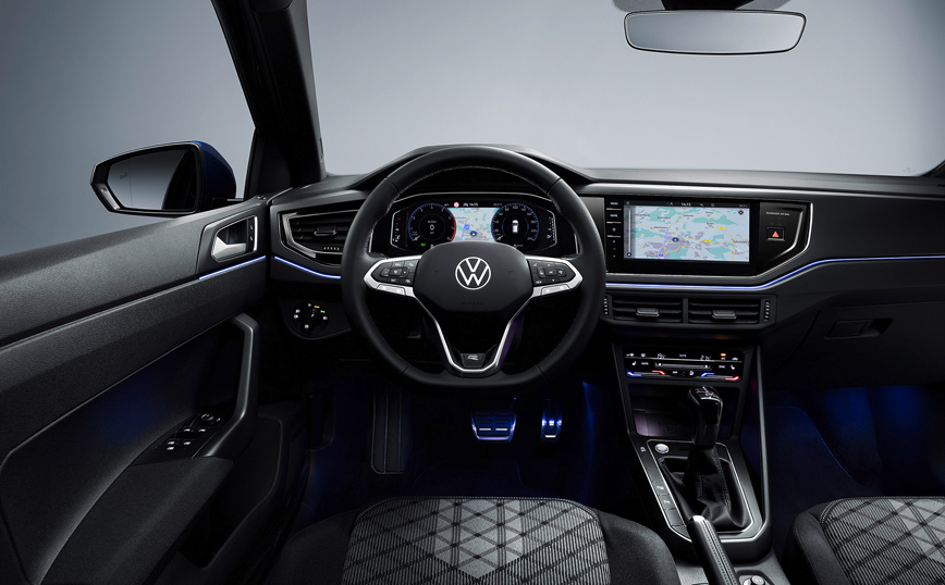 Στο εσωτερικό, το Polo διαθέτει στο βασικό εξοπλισμό το Digital Cockpit, ένα επανασχεδιασμένο πολυλειτουργικό τιμόνι και συστήματα ψυχαγωγίας νέας γενιάς, συμπεριλαμβανομένης της ηλεκτρονικής μονάδας ελέγχου (eSIM) και του App-Connect Wireless (ανάλογα με την έκδοση). Οι πελάτες που επιλέγουν το Climatronic στο όχημά τους θα μπορούν πλέον να χρησιμοποιούν το αυτόματο κλιματιστικό μέσω οθόνης αφής, όπως συμβαίνει και σε μεγαλύτερα μοντέλα όπως το Tiguan, το Passat και το Arteon.