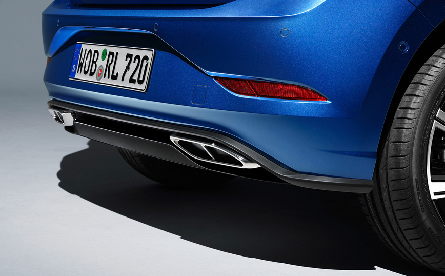 Η R-Line, όπως προδίδει το όνομά της έχει σπορ προφυλακτήρες σε σχεδιασμό R. Και εδώ, οι προβολείς matrix IQ.LIGHT LED και τα φώτα ομίχλης LED είναι στάνταρ. Ένας διαχύτης σε μαύρο γυαλιστερό χρώμα με ενσωματωμένες απολήξεις εξάτμισης με χρώμιο, χαρίζει οπτική διαφοροποίηση σε αυτήν την περιοχή από τις εκδόσεις εξοπλισμού Polo, Life και Style. Ζάντες αλουμινίου 16 ιντσών είναι στάνταρ στο Polo R-Line.