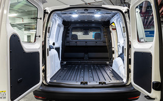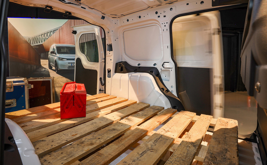 Ο διαθέσιμος χώρος αυξάνεται από τον πλήρως επανασχεδιασμένο πίσω άξονα και σαν αποτέλεσμα το Caddy Van μπορεί να φιλοξενήσει μια ευρωπαλέτα στο πίσω μέρος, καθώς το μέγιστο πλάτος μεταξύ των θόλων των τροχών έχει αυξηθεί στα 1.230 χιλιοστά. Χάρη στις συρόμενες πόρτες που έχουν αυξηθεί σε πλάτος πάνω από τα 840 χιλιοστά (προηγουμένως 701 χιλιοστά), το νέο Caddy Van Maxi φιλοξενεί και μια δεύτερη ευρωπαλέτα, φορτωμένη από το πλάι. Οι παλέτες μπορούν να φορτωθούν με διάφορους τρόπους: είτε πλάγια τόσο στο κέντρο όσο και στο πίσω μέρος, είτε πλάγια στο κέντρο και κατά μήκος πίσω. Το μέγιστο μήκος του χώρου φόρτωσης έως το διαχωριστικό είναι 1.797 χιλιοστά (Van) και 2.150 χιλιοστά (Van Maxi).