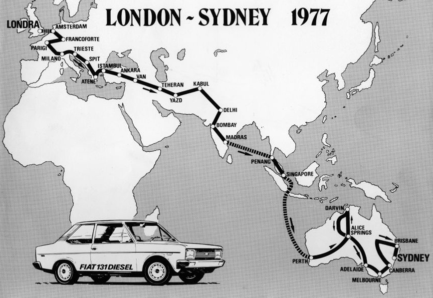 Όλα ξεκίνησαν όταν στα τέλη της δεκαετίας του 1970, η Fiat, αποφάσισε να λανσάρει μια diesel έκδοση του δημοφιλούς 131 Mirafiori. Για να δοκιμάσει το νέο μοντέλο, πριν την επίσημη παρουσίαση του, αποφασίστηκε η συμμετοχή σε έναν απίστευτο Μαραθώνιο, με αφετηρία το Λονδίνο και τερματισμό στην άλλη άκρη της Κοινοπολιτείας, την πόλη του Σίδνεϊ στην Αυστραλία. Η διοργάνωση, θα αποτελούσε το μεγαλύτερο σε απόσταση αγώνα με αυτοκίνητα της ιστορίας. Με την προγραμματισμένη για το Απρίλιο του 1978 επίσημη παρουσίαση του 131 Diesel, η Fiat αποφάσισε να λάβει μέρος με τρία αυτοκίνητα προ-παραγωγής σε αυτή την διηπειρωτική περιπέτεια, στην οποία συμμετείχαν και αρκετοί άλλοι κατασκευαστές.