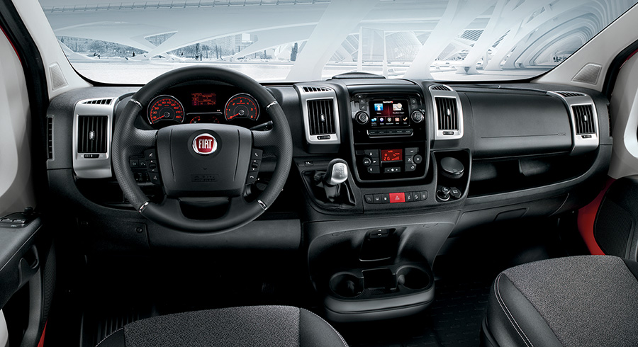 Το νέο Ducato προσφέρει 3 διαφορετικά εσωτερικά -Classic, Tecno and Lounge- με αυξανόμενα επίπεδα πολυτέλειας και κομψότητας και χαρακτηρίζεται από τα νέα καθίσματα που προσφέρουν κορυφαία άνεση και από τη νέα ποτηροθήκη στην κεντρική κονσόλα.