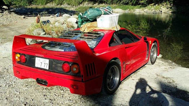 Σημειωτέον ότι η συγκεκριμένη Ferrari F40, όπως δείχνουν και οι φωτογραφίες πρέπει να έχει δεχθεί επεμβάσεις στην ανάρτηση, ώστε να μεγαλώσει η απόσταση του μοντέλου από το έδαφος, καθώς οι ανησυχίες του ιδιοκτήτη οδήγησαν τη F40 όχι σε κάποια πίστα ταχύτητας, αλλά… σε ελεύθερο camping.