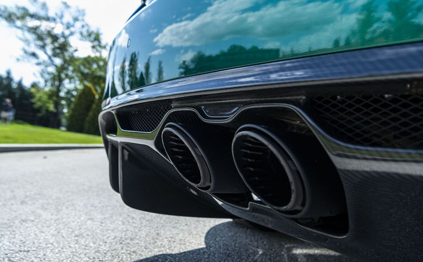 Στο πλάι, τα αεροδυναμικά στοιχεία τονίζουν το πλάτος του αυτοκινήτου, ενώ οι ειδικού σχεδιασμού τροχοί των 20 ιντσών, διαθέτουν κεντρικό μπουλόνι ώστε να συνδυάζουν τη δυναμική αισθητική με το χαμηλό βάρος. Η συγκεκριμένη λύση αποτελεί κανόνα στη Formula 1, αλλά κάτι μοναδικό για σεντάν παραγωγής.