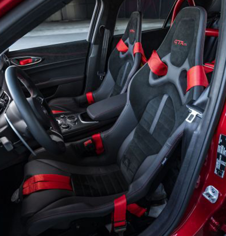 Η ισχύς δεν αρκεί για την επίτευξη κορυφαίων επιδόσεων. Η εστίαση στη μείωση του βάρους ήταν έντονη και έφερε εντυπωσιακά αποτελέσματα. Συνολικά το βάρος (σε σχέση με την ήδη εξαιρετική σε αυτό τον τομέα Quadrifoglio) μειώθηκε κατά 100 κιλά με τη χρήση ελαφρών υλικών, όπως τα ανθακονήματα, στους προφυλακτήρες και τα φτερά, αλλά και τα ειδικά για την περίσταση ελαφρά σπορ καθίσματα. Τα παραπάνω ήρθαν να προστεθούν στην οροφή, το κάλυμμα του κινητήρα και τον άξονα μετάδοσης, που είναι επίσης κατασκευασμένα από ανθρακονήματα και εφοδίαζαν ήδη την έκδοση Quadrifoglio.