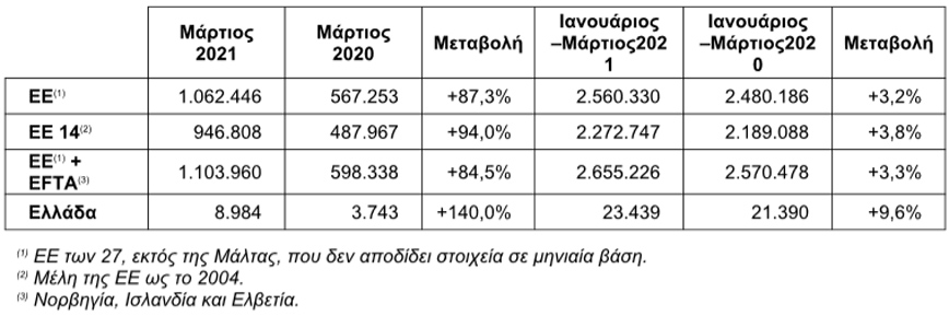 Τέλος, σε επίπεδο ΕΕ, με βάση τα στοιχεία του Ευρωπαϊκού Συνδέσμου Κατασκευαστών Αυτοκινήτων (www.acea.be), η αγορά των επιβατικών κινήθηκε ως και το Μάρτιο ως εξής: