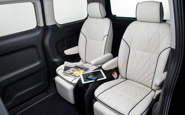 Η τοποθέτηση των πίσω καθισμάτων πίσω από τη συρόμενη πόρτα, αφενός μεν διευκολύνει στο μέγιστο βαθμό την πρόσβαση στην καμπίνα των επιβατών, αφετέρου δε επεκτείνει το διαθέσιμο χώρο για τα πόδια μέχρι 670 mm, γεγονός που θα ικανοποιήσει -με ανέσεις λιμουζίνας- ακόμα και πανύψηλους επιβάτες. Πίσω από τα καθίσματα υπάρχει άφθονος χώρος για τις αποσκευές, καθιστώντας το e-NV200 VIP Concept ιδανικό για τις μεταφορές στο αεροδρόμιο.