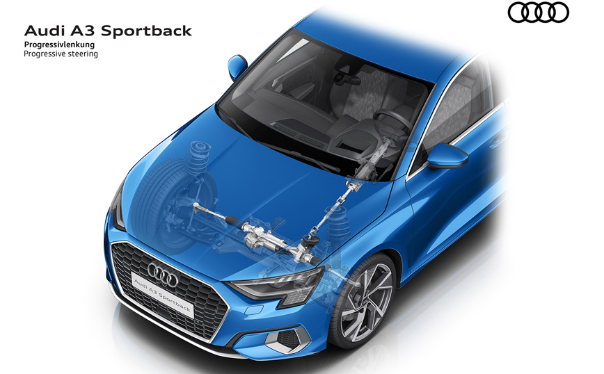«Προοδευτικό» σημαίνει ότι το σύστημα διεύθυνσης συμπεριφέρεται διαφορετικά ανάλογα με τη γωνία του τιμονιού. Το τιμόνι και τα γρανάζια είναι ειδικά σχεδιασμένα για τον σκοπό αυτό. Σε μια απότομη γωνία διεύθυνσης, η σχέση μετάδοσης είναι μικρότερη και η οδήγηση πολύ άμεση. Όταν ο οδηγός πρέπει να κάνει ελιγμούς ή να σταθμεύσει, το μόνο που χρειάζεται είναι δυόμισι περιστροφές του τιμονιού απ’ άκρη σε άκρη. Ο οδηγός θα βιώσει μια πιο δυναμική οδήγηση σε αυτοκινητόδρομους με στροφές λόγω της πιο άμεσης μετάδοσης. Η υποβοήθηση προσαρμόζεται στην ταχύτητα οδήγησης. Σε χαμηλές ταχύτητες, βρίσκεται σε υψηλό επίπεδο για ευελιξία και μειώνεται καθώς αυξάνεται η ταχύτητα.