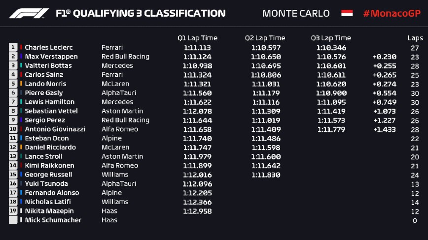 Εκπλήξεις στις κατατακτήριες δοκιμές για το Γκραν Πρι στο Μόντε Κάρλο, αφού τον ταχύτερο χρόνο έκανε ο Σαρλ Λεκλέρκ με Ferrari.