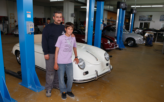 Ο Ηλίας Γαγανέλης με το γιο του, Σωκράτη, ο οποίος μαθαίνει από τώρα τα μυστικά των αυτοκινήτων ρέπλικες