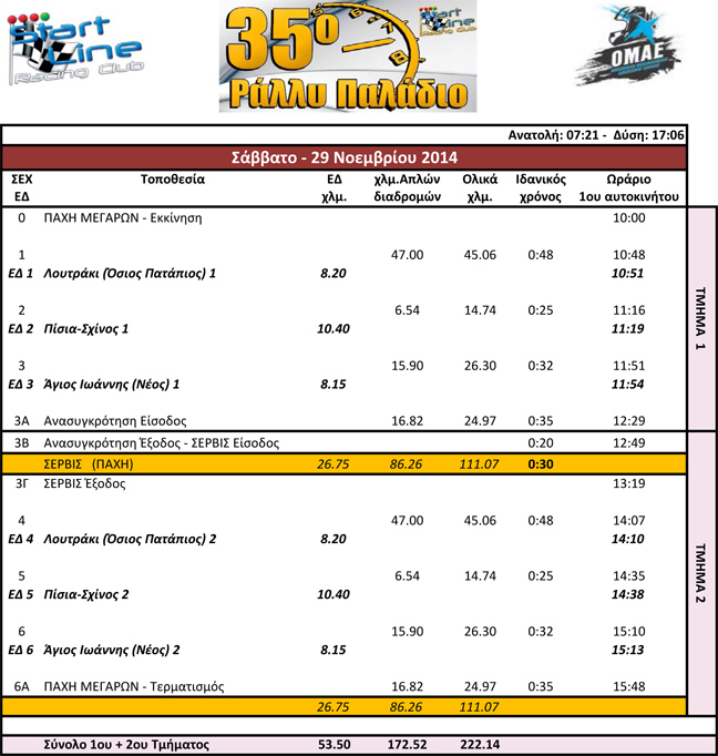 35ο ΡΑΛΛΥ ΠΑΛΑΔΙΟ – ΠΡΟΓΡΑΜΜΑ