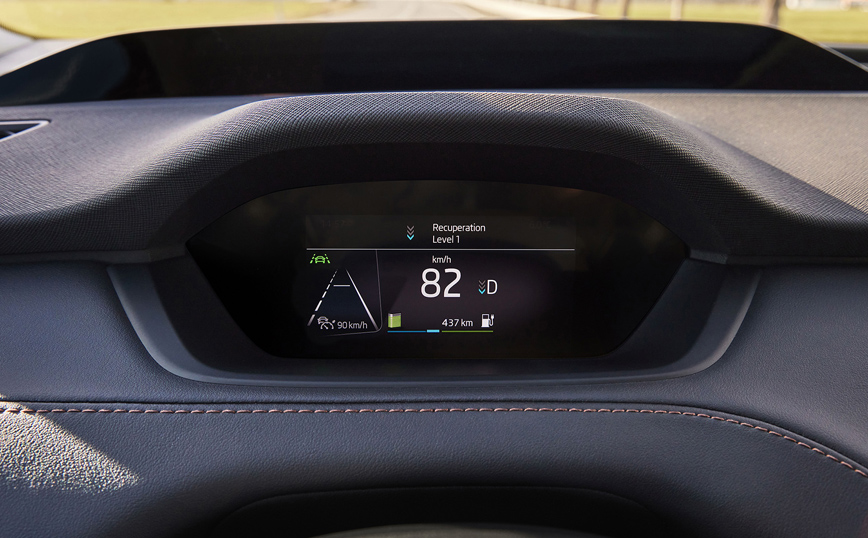 Επιπλέον, ο οδηγός έχει στη διάθεσή σου τέσσερα προγράμματα οδήγησης, (Eco, Normal, Sport & Individual), ενώ στον επιλογέα του κιβωτίου υπάρχει και η λειτουργία Auto, με την οποία ο το ηλεκτρονικό σύστημα διαχείρισης του Enyaq iV επιλέγει τον βαθμό ανάκτησης ενέργειας με βάση τα εμπρός κινούμενα οχήματα.