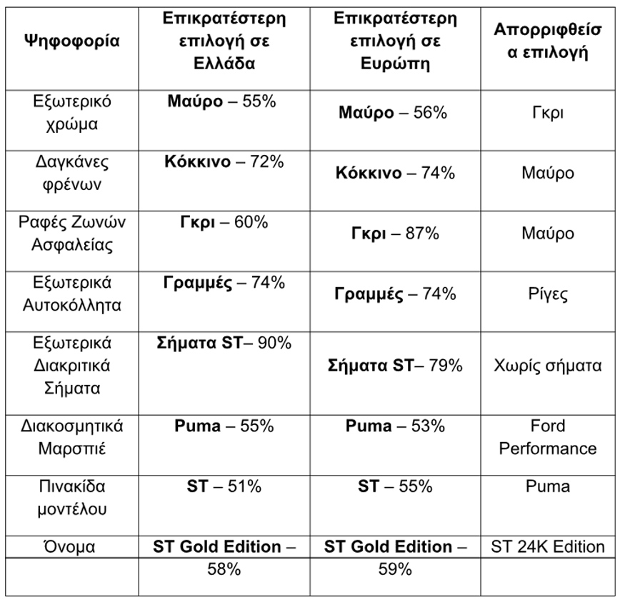 Μετά από ένα καινοτόμο πείραμα στην ανθρωποκεντρική σχεδίαση, η Ford αποκάλυψε σήμερα τα χαρακτηριστικά που συγκέντρωσαν τις περισσότερες προτιμήσεις για το νέο Puma ST Gold Edition, το οποίο θα κυκλοφορήσει σε περιορισμένο αριθμό αντιτύπων αργότερα μέσα στη χρονιά.