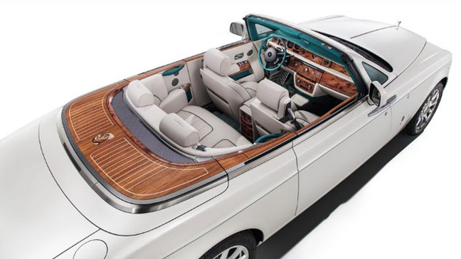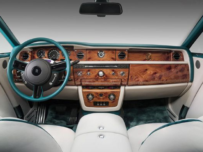 Η Rolls-Royce παρουσιάζει τη νέα Maharaja Phantom Drophead Coupe, ένα αυτοκίνητο που έγινε αποκλειστικά για τους πελάτες της εταιρείας στο Ντουμπάι. Το περιορισμένης παραγωγής μοντέλο διαθέτει άσπρη (Carrara White) απόχρωση, πράσινες (Emerald Green) λεπτομέρειες και εμβλήματα με το παγώνι, το οποίο θεωρείται το εθνικό πουλί της Ινδίας. Πράσινη (Deep Green) είναι και η υφασμάτινη οροφή της ειδικής αυτής Phantom Drophead Coupe, η οποία αποθηκεύεται κάτω από μια ξύλινη επιφάνεια, αποκαλύπτοντας ένα εντυπωσιακό εσωτερικό. Η υπερπολυτελής καμπίνα της έκδοσης Maharaja, διαθέτει δερμάτινες κρεμ (Creme Light) επενδύσεις, άφθονο ξύλο και πράσινες «πινελιές», όπως στο τιμόνι, στο ταμπλό, στις χειρολαβές και σε τμήματα των θυρών.