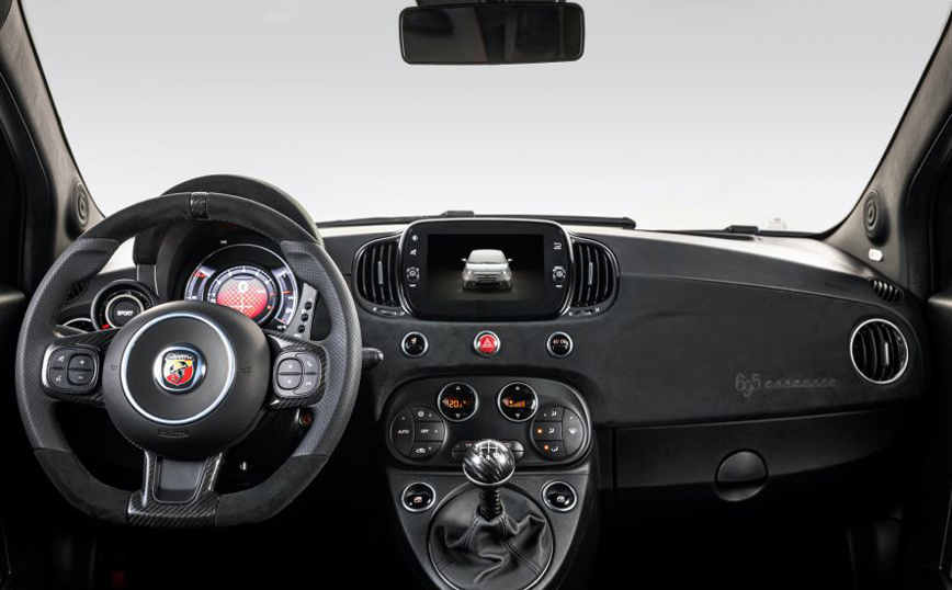 Εκτός από το εντυπωσιακό αεροδυναμικό βοήθημα, το σπορ μοντέλο ξεχωρίζει από τους νέους λευκού χρώματος τροχούς διαμέτρου 18’’, τις κόκκινες δαγκάνες της Brembo και τα ειδικά λογότυπα. Στο πίσω μέρος κυριαρχούν οι απολήξεις τιτανίου της εξάτμισης της Akrapovič, που εκτός από τις επιδόσεις και την ξεχωριστή αισθητική, εντυπωσιάζουν και με το ηχητικό αποτέλεσμα που προσφέρουν. Αντίστοιχα στο εσωτερικό τα σπορ καθίσματα της Sabelt με την επισήμανση «one of 695» δίνουν το στίγμα του συλλεκτικού χαρακτήρα του μοντέλου, ενώ οι κόκκινες ζώνες, οι λεπτομέρειες από ανθρακονήματα και η ευρεία χρήση Alcantara στο ταμπλό ενισχύουν τον αγωνιστικό χαρακτήρα του μοντέλου, όπως και το σύστημα τηλεμετρίας που περιλαμβάνετε στο σύστημα πολυμέσων Uconnect με την οθόνη αφής των 7’’.