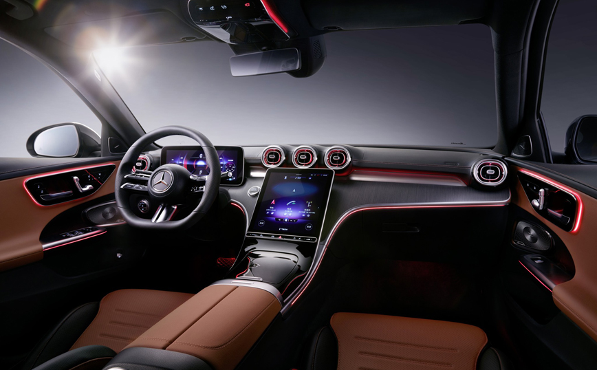 Οι δύο αυτές οθόνες έχουν η μεν του οδηγού διαγώνιο 12,3 ιντσών (31,2 εκ.), η δε κεντρική οθόνη 11,9 ιντσών (30,2 εκ.) και περιλαμβάνονται στον βασικό εξοπλισμό του οχήματος. Τόσο η οθόνη οδηγού όσο και η οθόνη πολυμέσων προσφέρουν μια ολοκληρωμένη αισθητική εμπειρία, ενώ η εμφάνισή τους μπορεί να εξατομικευθεί επιλέγοντας ανάμεσα σε τρία στιλ ενδείξεων και τρεις τρόπους λειτουργίας. Σε συνδυασμό με οποιαδήποτε γραμμή εξοπλισμού, ο βασικός εξοπλισμός της νέας C-Class περιλαμβάνει ατμοσφαιρικό φωτισμό με οπτικές ίνες.