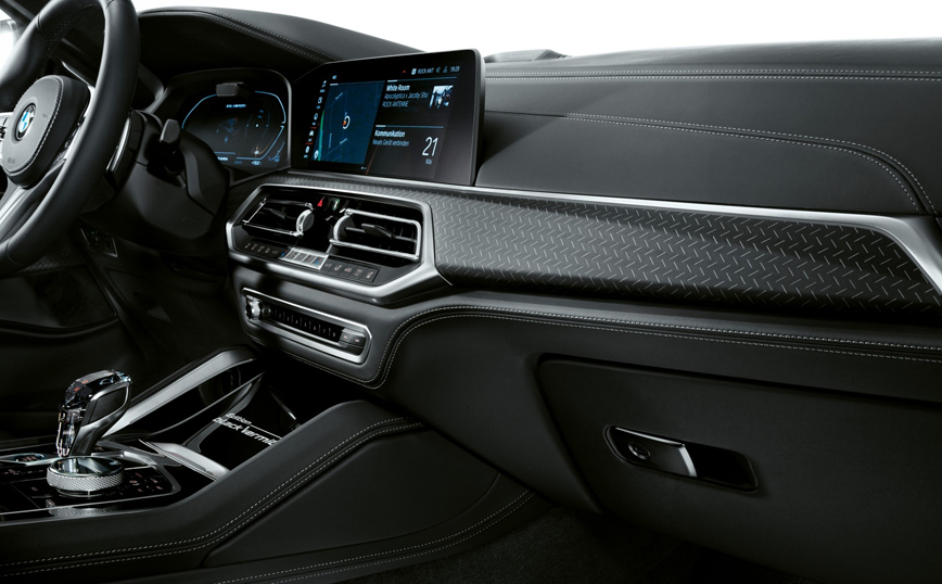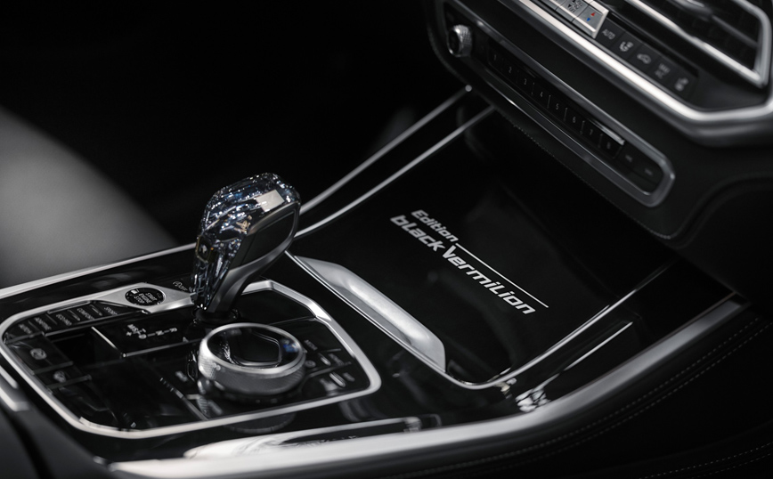 Στο εσωτερικό της X7 edition σε Frozen Black metallic κυριαρχεί μία κομψή, διακριτική ατμόσφαιρα χάρη στην επένδυση οροφής M Alcantara Anthracite, τη χρήση κρυστάλλινων στοιχείων Crafted Clarity και τα αντιηλιακά κρύσταλλα.