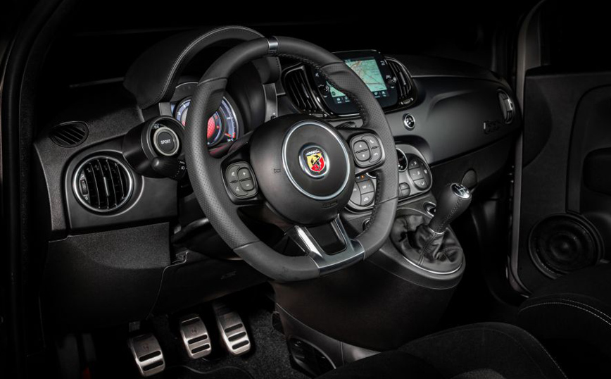 Ο κινητήρας συνδυάζεται με χειροκίνητο κιβώτιο, αλλά διαθέσιμη είναι και η επιλογή αυτόματου κιβωτίου που συνδυάζεται με paddles πίσω από το τιμόνι. Οι επιδόσεις και στις δύο περιπτώσεις είναι παραπλήσιες, με την διαδικασία 0-100χλμ./ώρα να ολοκληρώνεται σε 7,3 και 7,4 δευτερόλεπτα με το χειροκίνητο και το αυτόματο κιβώτιο αντίστοιχα. Την ηχητική απόδοση του κινητήρα έχει αναλάβει η θρυλική εξάτμιση Record Monza, η οποία πλέον διαθέτει κάθετες απολήξεις, δύο από κάθε πλευρά. Η ενεργή βαλβίδα της εξάτμισης ενεργοποιείται από ένα κουμπί στο ταμπλό, επιτρέποντας στον οδηγό να επιλέξει μεταξύ ενός πιο διακριτικού μπάσου ήχου, ή τον τυπικό ήχο της Abarth που ξεσηκώνει στο πέρασμα του.