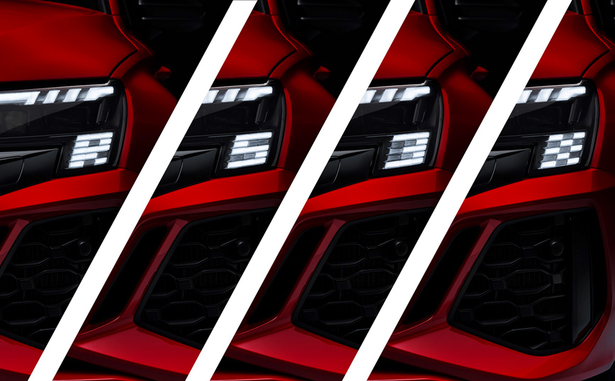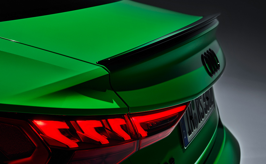 Το RS 3 είναι στάνταρ εξοπλισμένο με επίπεδους, σφηνοειδείς προβολείς LED και πίσω φώτα LED, συμπεριλαμβανομένων δυναμικών φλας. Οι προβολείς LED Matrix διατίθενται προαιρετικά, με σκούρα περιγράμματα γύρω από τα ψηφιακά φώτα ημέρας. Πίσω από τους θόλους των μπροστινών τροχών έχει δημιουργηθεί μια εντυπωσιακή πρόσθετη έξοδος αέρα. Ο μπροστινός άξονας έχει διευρυνθεί κατά 33 χιλιοστά σε σύγκριση με το προηγούμενο μοντέλο, ενώ -στο Sportback- ο πίσω άξονας έχει αυξηθεί κατά 10 χιλιοστά. Το RS 3 είναι στάνταρ εξοπλισμένο με ατσάλινες ζάντες 19 ιντσών σε σχέδιο ακτίνας 10Υ. Ο αγωνιστικός σχεδιασμός ενσωματώνεται από τις προαιρετικά διαθέσιμες ακτίνες 5Υ με την επωνυμία RS. Η Audi θα τοποθετεί επίσης semi-slick ελαστικά επιδόσεων Pirelli PZero «TrofeoR» για πρώτη φορά, προαιρετικά. Οι πινελιές φινιρίσματος περιλαμβάνουν τον επανασχεδιασμένο πίσω προφυλακτήρα με ενσωματωμένο διαχύτη και το σύστημα εξάτμισης RS με δύο μεγάλες οβάλ απολήξεις.