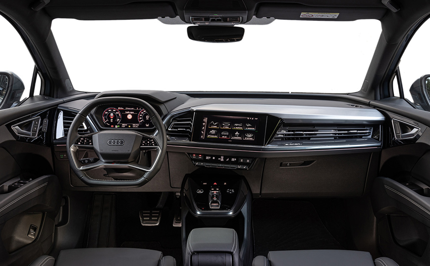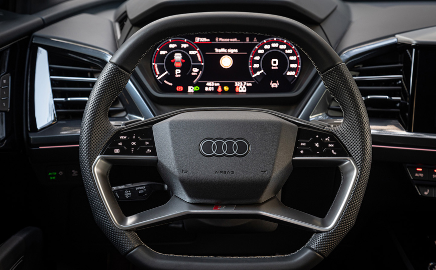 Το με μήκος 4,60μ., όχι ιδιαίτερα ψηλό και 2.135 κιλών βάρους ηλεκτρικό SUV, κινείται σαν πάνω σε στρώμα αέρα με απίστευτη σβελτάδα αρκεί ο οδηγός του να μην παρατηρεί την ηλεκτρική κατανάλωση. Όμως, ακόμα και με το άγχος «μην μείνω από ρεύμα», η μπαταρία των –ουσιαστικά- 76,6 KWh δίνει μεγάλο τράτο στον οδηγό, καθώς ο κατασκευαστής υπόσχεται αυτονομία περί τα 450 χιλιόμετρα, αριθμός που είναι ρεαλιστικός ακόμα και με σβέλτους ρυθμούς, συνυπολογίζοντας και την ανάκτηση ενέργειας, στην οποία το Q4 e-tron. Στην δική μας πάντως δοκιμή, με ρυθμούς που δικαιολογούν οι αναμνήσεις των πρώτων Quattro που πάτησαν στην χώρα (εντάξει μετά τα Panzer…), η μέση κατανάλωση δεν ξεπέρασε τις 25 KWh για κάθε 100 χιλιόμετρα, αξιοποιώντας βέβαια στο έπακρο τις δυνατότητες ανάκτησης (και είναι πολλές) που δίνει ο κατασκευαστής.