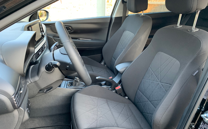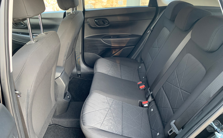 Στρογγυλοκαθίσαμε στην θέση οδήγησης, διαπιστώνοντας ότι, το μόλις 2,5 εκατοστά μικρότερο από το Kona και 14 εκατοστά μεγαλύτερο από το i20 όχημα, εκμεταλλεύεται το μεγάλο (2.580 χλστ) μεταξόνιο και διαθέτει άνετους χώρους για εμπρός και πίσω επιβάτες. Ταυτόχρονα δεν έχει ενοχλητικές εργονομικές ατέλειες, ενώ η περιφερειακή ορατότητα πάσχει μόνο μστις πίσω γωνίες λόγω της μεγάλης διατομής των «υποστυλωμάτων» της οροφής.