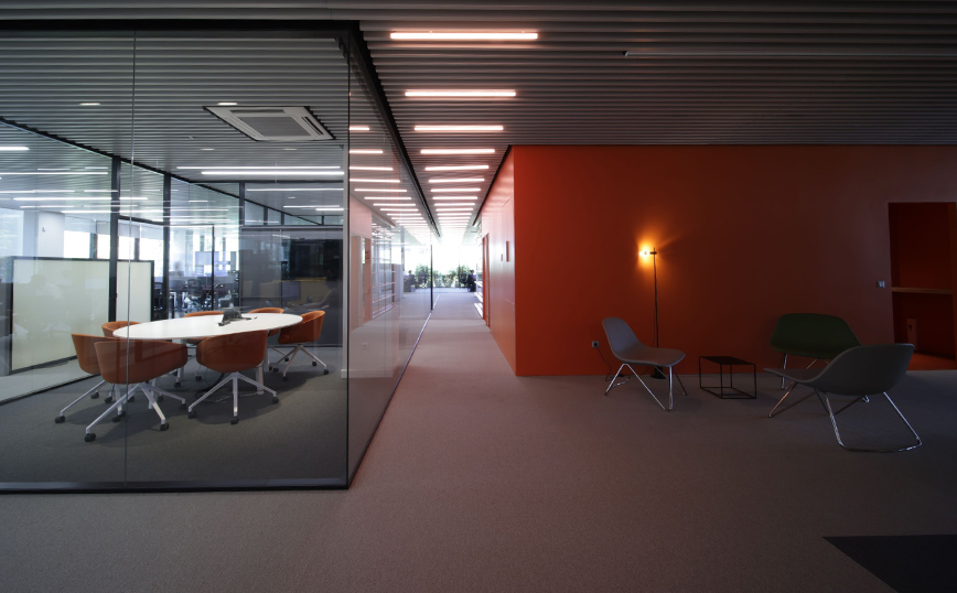 Τα νέα κεντρικά γραφεία στο Μαρούσι, συνδυάζουν τα πρότυπα και τις ειδικές απαιτήσεις ενός σύγχρονου χώρου εργασίας με τα βασικά χαρακτηριστικά της ταυτότητας της εταιρείας: διαφάνεια, ομαδικότητα, προσαρμοστικότητα, αισθητική.