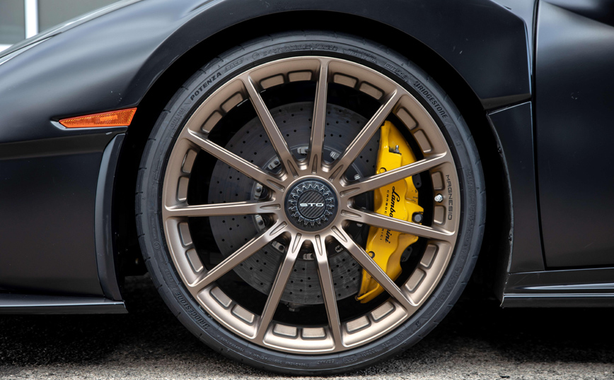 Τα ειδικά σχεδιασμένα ελαστικά Potenza Race έχουν σχεδιαστεί για να ενισχύσουν τις τρομακτικές δυνατότητες του Huracán STO και να επιτρέψουν στους οδηγούς να βιώσουν πραγματικές υψηλές επιδόσεις. Σε αυτά τα πλαίσια, το πέλμα του ελαστικού είναι επενδεδυμένο με τα τρία χρώματα της Ιταλίας (γεγονός που σηματοδοτεί ότι τόσο το ελαστικό όσο και το όχημα έχουν σχεδιαστεί στην Ιταλία) και φυσικά διαθέτει τα διακριτικά της Lamborghini.