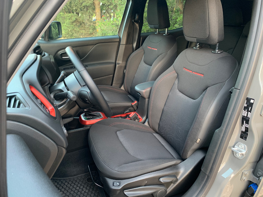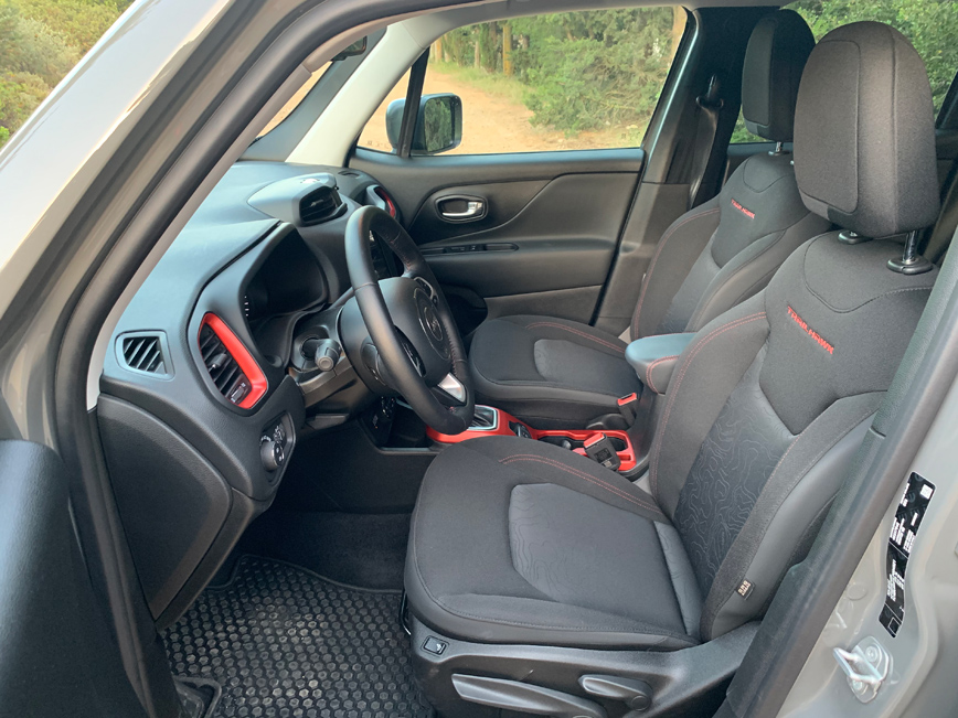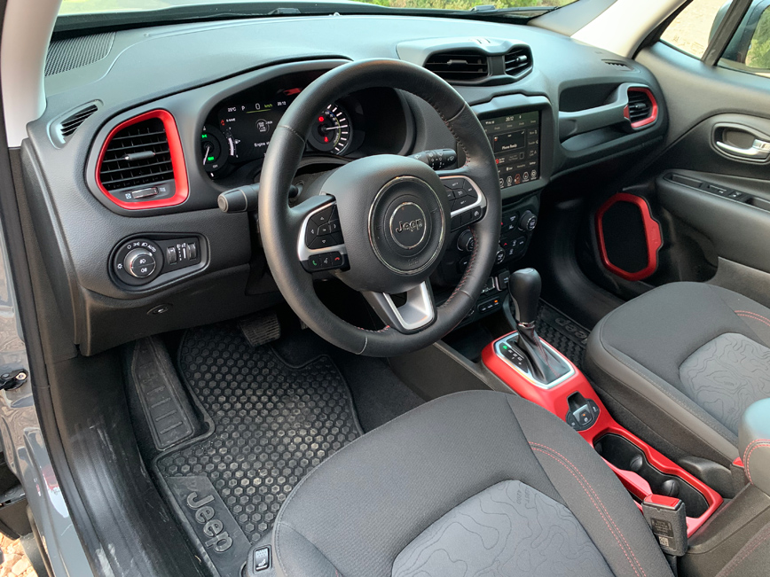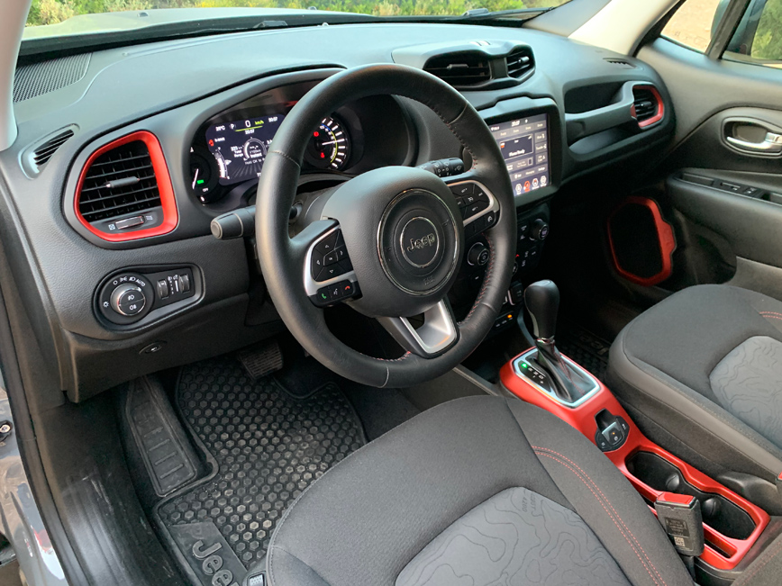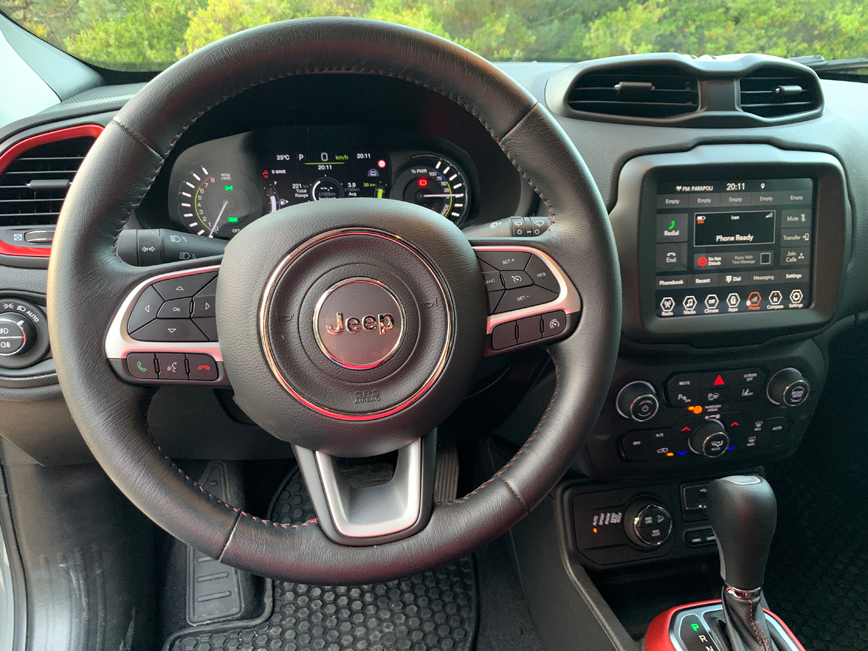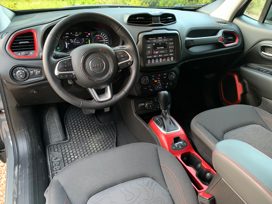 Το εσωτερικό παραμένει λιτό και απέριττο, με ευχάριστους χρωματικούς συνδυασμούς, άνετους χώρους για τέσσερις επιβάτες και χώρο αποσκευών των 330 λίτρων (αντί 351 της μη υβριδικής έκδοσης) που μπορεί να φτάσει έως τα 1.277 λίτρα με την αναδίπλωση των πίσω καθισμάτων. Επειδή μάλιστα η λιτότητα θέλει… καλοπέραση, το υβριδικό Renegade διαθέτει το σύστημα infotainment Uconnect, με οθόνη αφής 8,4 ιντσών που είναι συμβατή με Apple CarPlay, Android Auto και Phone Mirroring, ενώ στον πίνακα οργάνων υπάρχει έγχρωμη οθόνη TFT 7 ιντσών.