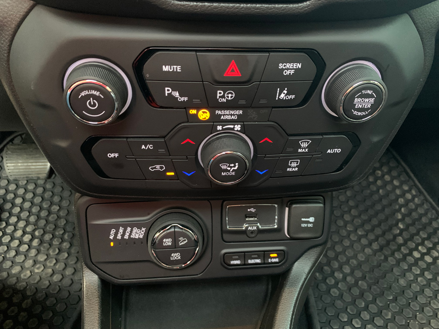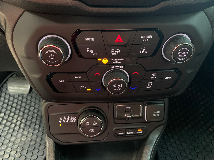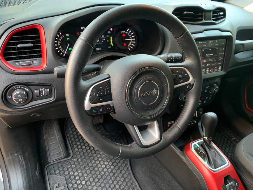 Έτσι, το μοντέλο που οδηγήσαμε πριν λίγες ημέρες είναι το Renegade, με τον χαρακτηριστικό κωδικό «4xe», στην έκδοση Trailhawk, με δύο ηλεκτροκινητήρες και μία συστοιχία συσσωρευτών χωρητικότητας 11,4 kWh, που συνδυάζονται με τον τούρμπο βενζινοκινητήρα 1.3 MultiAir3 και αυτόματο κιβώτιο των 6 σχέσεων. Η πλούσια έκδοση Trailhawk είναι η πλέον… SUV από τις άλλες, καθώς απέχει από το έδαφος 210 χλστ. και φορά M+S ελαστικά σε 17άρες ζάντες αλουμινίου.