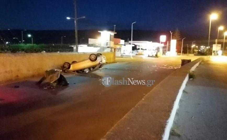 Τροχαίο ατύχημα με ένα αυτοκίνητο το οποίο «προσγειώθηκε» ανάποδα σημειώθηκε τα ξημερώματα της Παρασκευής (13/8)στη λεωφόρο Μουρνιών στα Χανιά.
