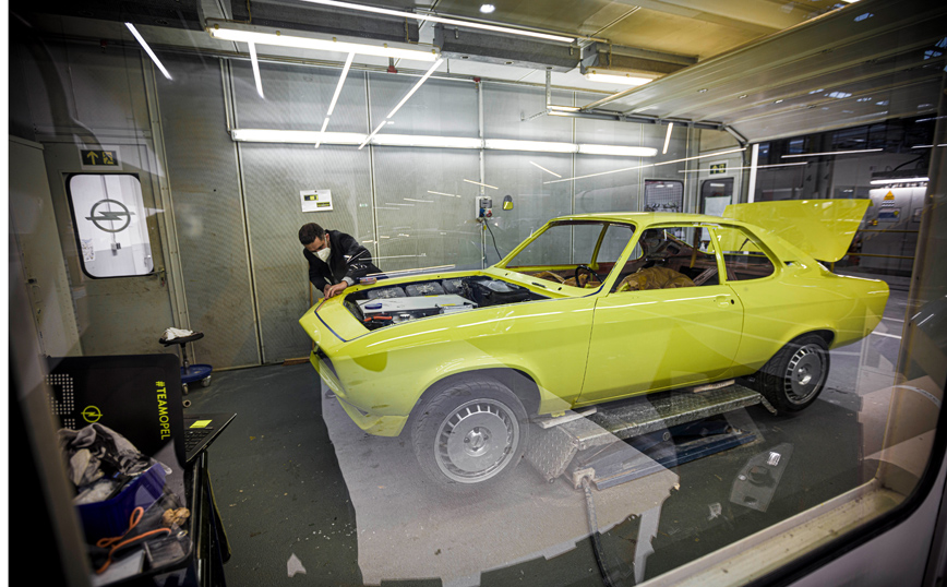 Στην αρχή υπήρχε το αυτοκίνητο. Για την ακρίβεια ένα πορτοκαλί-κόκκινο Opel Manta με μαύρη οροφή από βινύλιο της συλλογής Opel Classic. Τυπικός εκπρόσωπος της πολύχρωμης, ξέφρενης δεκαετίας του ’70. Ένα style icon. Αυθεντικό, γενικά σε καλή κατάσταση, αλλά λίγο φθαρμένο. Χωρίς «αναπαλαίωση», θύμιζε περισσότερο πλατφόρμα εξαρτημάτων. Την ίδια στιγμή, ο ηλεκτρικός προσανατολισμός της Opel είναι σε πλήρη εξέλιξη και έτσι το ένα έφερε το άλλο.