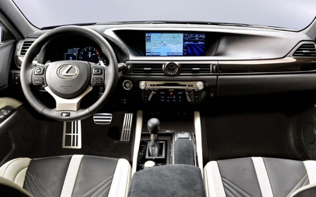 Στο εσωτερικό πάλι του νέου GS F μαγνητίζουν τα «αγωνιστικού» τύπου καθίσματα με τη δίχρωμη επένδυση, τα φινιρίσματα από ανθρακόνημα, καθώς και η μεγάλη οθόνη αφής πολλαπλών λειτουργιών στην κεντρική κονσόλα.