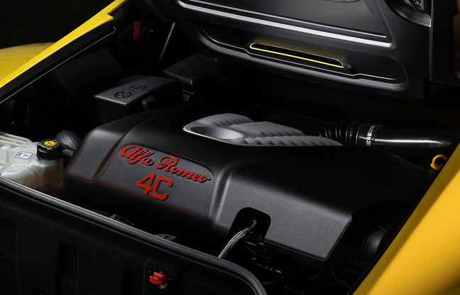 Ο αλουμινένιος κινητήρας 1750 Turbo με άμεσο ψεκασμό, διπλό intercooler και διπλό συνεχώς μεταβλητό χρονισμό βαλβίδων αποδίδει 237 ίππους ή αλλιώς μια εντυπωσιακή ειδική ισχύ 136 ίππων ανά λίτρο. Ο ψεκασμός υψηλής πίεσης σε ακροφύσια πολλαπλών οπών επιτρέπει ομοιόμορφη κατανομή του καυσίμου, ενώ για τη μείωση των κραδασμών στις υψηλές ταχύτητες ο στροφαλοφόρος έχει 8 αντίβαρα. Η προηγμένη τεχνολογία του υπερσυμπιεστή επιτρέπει τη μεγιστοποίηση της ροπής στις χαμηλές στροφές του κινητήρα, αλλά και τη μείωση της υστέρησης απόκρισης του τούρμπο. το αποτέλεσμα είναι μία ροπή 350 Nm, το 80% της οποίας είναι διαθέσιμο μόλις στις 1.700 στροφές. Ιδανικά συνδυάζονται με τον συγκεκριμένο κινητήρα το ταχύτατο αυτόματο κιβώτιο διπλού ξηρού συμπλέκτη Alfa TCT και ο επιλογέας Alfa DNA, που μετατρέπουν την 4C Spider σε επέκταση του οδηγού.
