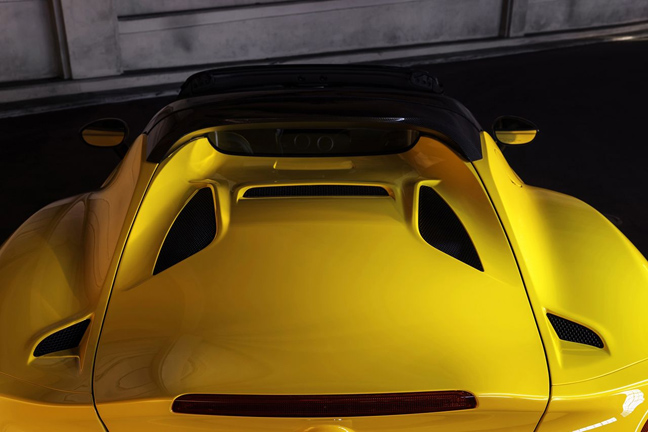 Το πίσω μέρος περικλείει την καρδιά του αυτοκινήτου, τα μηχανικά μέρη και τον κινητήρα, υποστηρίζεται από στρογγυλά πίσω φώτα LED και χαρακτηρίζεται από δύο μυώδη «φτερά», που ενσωματώνουν όμορφα τους πλευρικούς αεραγωγούς, αναγκαίους για την ψύξη του κινητήρα. Από κάτω, δύο εξατμίσεις είναι τοποθετημένες στις γωνίες, τονίζοντας την εικόνα της 4C Spider ως supercar. Αργότερα θα είναι διαθέσιμο κι ένα κεντρικά τοποθετημένο σύστημα εξάτμισης δύο σταδίων Akrapovič, εμπνευσμένο από την 4C Spider Concept.