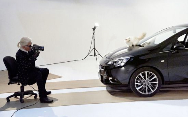Πρόκειται για την Choupette Lagerfeld. Η πασίγνωστη γάτα Βιρμανίας του σχεδιαστή πρωταγωνιστεί στο Ημερολόγιο 2015 Opel Corsa. «Η συνταγή Super model σε αυτοκίνητο αρχίζει και γίνεται βαρετή. Ο Karl Lagerfeld επινόησε μία νέα και φρέσκια προσέγγιση» δήλωσε η Διευθύντρια Μάρκετινγκ, Tina Müller. «Η πέμπτη γενιά Corsa μόλις λανσαρίστηκε. Τα τελευταία 32 χρόνια, έχει φωτογραφηθεί με αναρίθμητα supermodel. Υπήρχε μόνον ένας τρόπος για μεγαλύτερη πρωτοτυπία: η Choupette» δήλωσε η ειδικός του μάρκετινγκ.