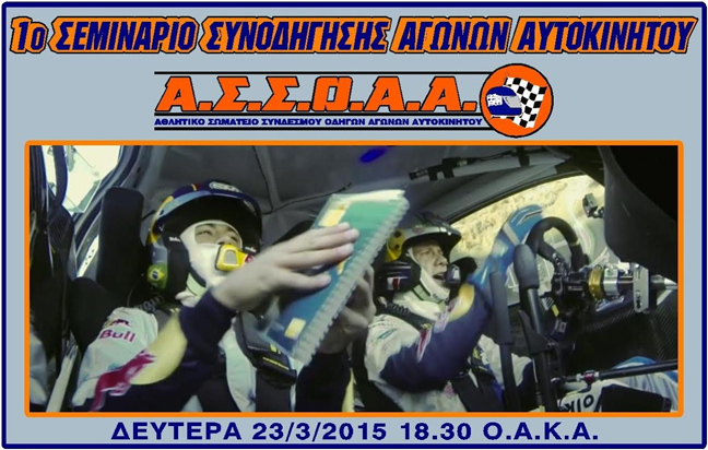 Το αθλητικό σωματείο ΑΣΣΟΑΑ εγκαινιάζει μια σειρά εκδηλώσεων ιδιαίτερου χαρακτήρα πέρα από τα τετριμμένα, με το 1ο Σεμινάριο Συνοδήγησης Αγώνων Αυτοκινήτου.