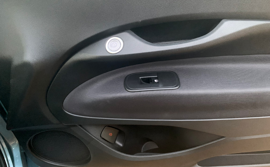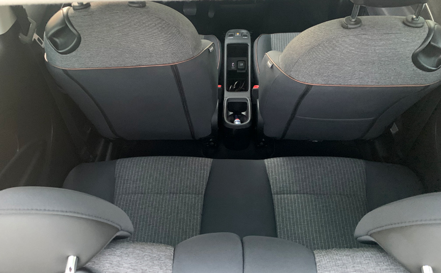 Τα καθίσματα είναι άνετα, αλλά ο οδηγός κάθεται ψηλά (λόγω της ύπαρξης μπαταριών στο δάπεδο) και οι χώροι για τα γόνατα των πίσω επιβατών (που έχουν εύκολη πρόσβαση) είναι περιορισμένοι. Την μειονεκτική θέση των πίσω …ενισχύει και το γεγονός ότι, τα πίσω πλευρικά κρύσταλλα είναι σταθερά. Ευχάριστη λεπτομέρεια τα μπουτόν που ανοίγουν από μέσα τις πόρτες και πρόβλημα η ημιδιαφανής μεμβράνη που προσπαθεί να προστατέψει τους επιβάτες από τον ήλιο που μπαίνει μέσω της πανοραμικής ηλιοροφής.