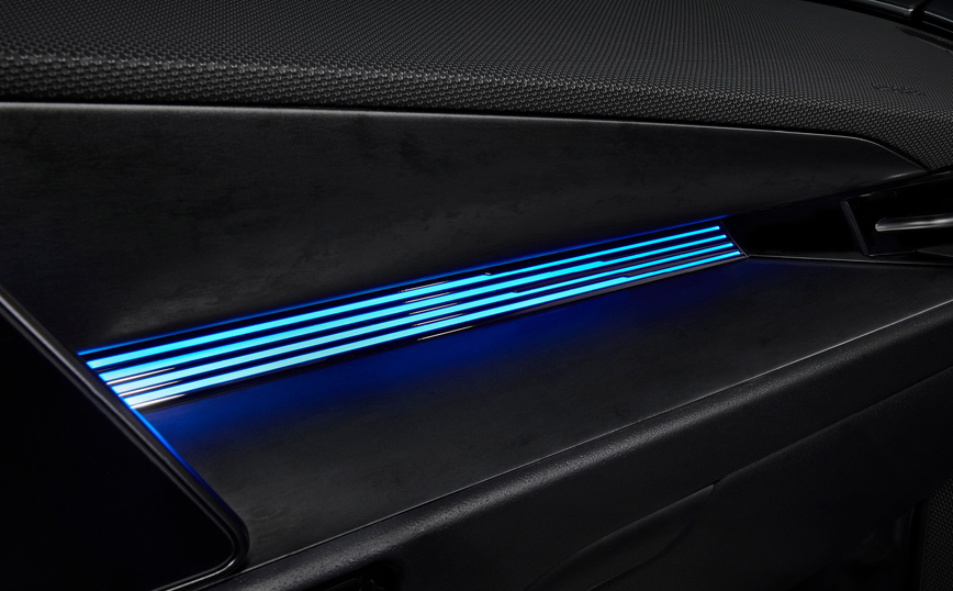 Η κεντρική οθόνη και οι αεραγωγοί του κλιματισμού έχουν ενσωματωθεί στην εσοχή κάτω από τη διαγώνια γραμμή του ταμπλό ενώ οι ατμοσφαιρικοί κρυφοί φωτισμοί ανεβάζουν τη διάθεση και δημιουργούν ένα φιλόξενο εσωτερικό.